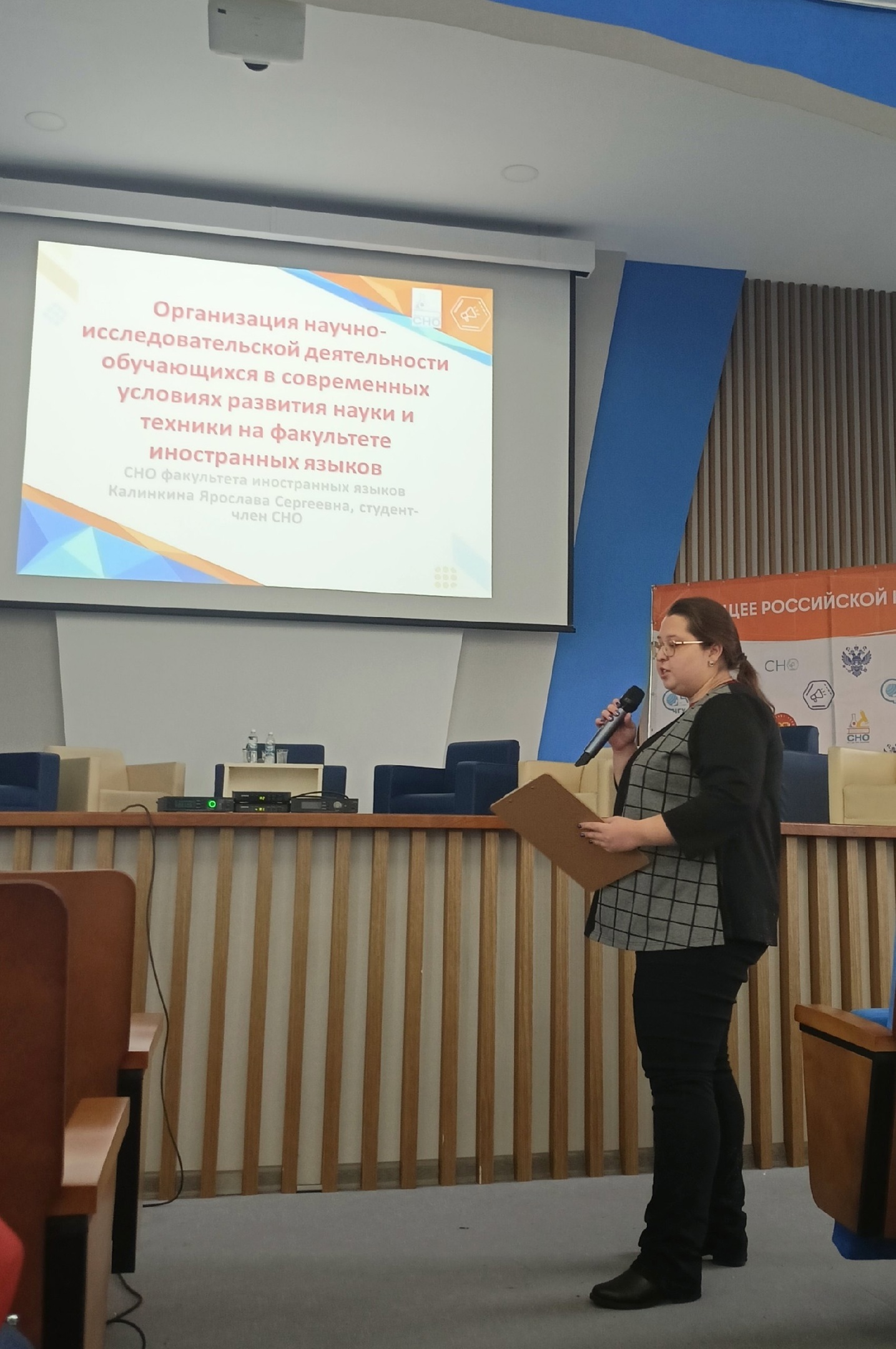 -Представитель СНО факультета иностранных языков Калинкина Ярослава выступила с презентацией деятельности СНО нашего факультета