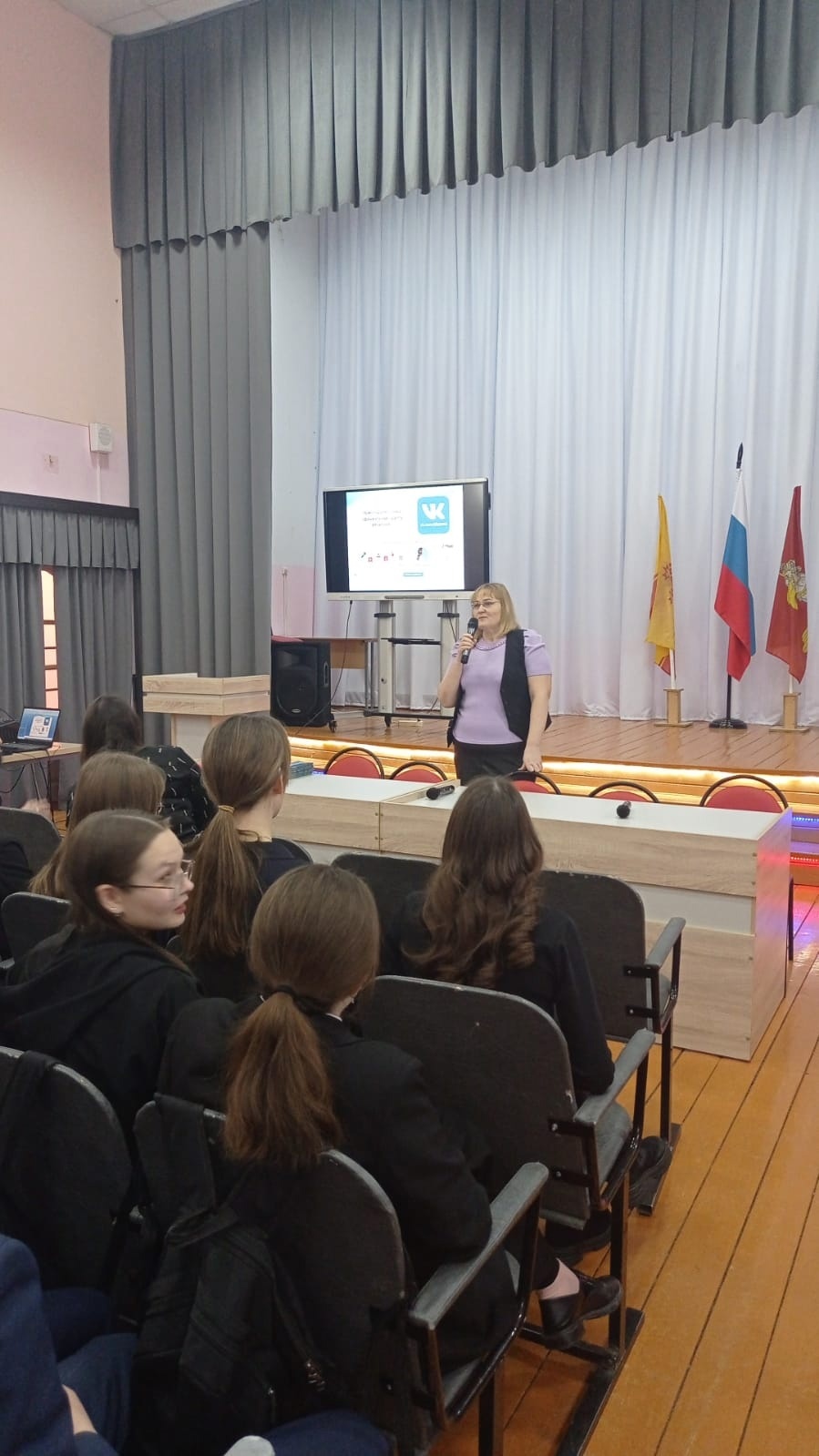 ДОЦЕНТ КАФЕДРЫ РОМАНО-ГЕРМАНСКОЙ ФИЛОЛОГИИ И ПЕРЕВОДОВЕДЕНИЯ КЛЫКОВА Ю.Ю. С ПРОФОРИЕНТАЦИОННОЙ ВСТРЕЧЕЙ В С. ЯНТИКОВО
