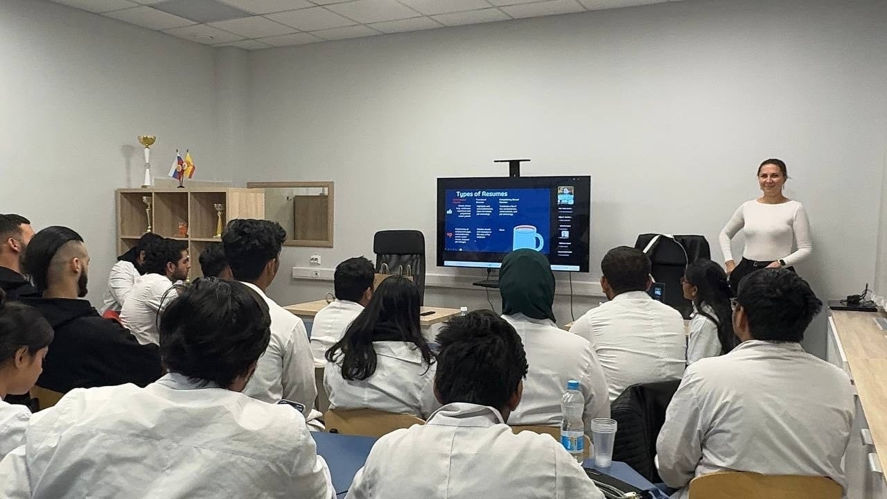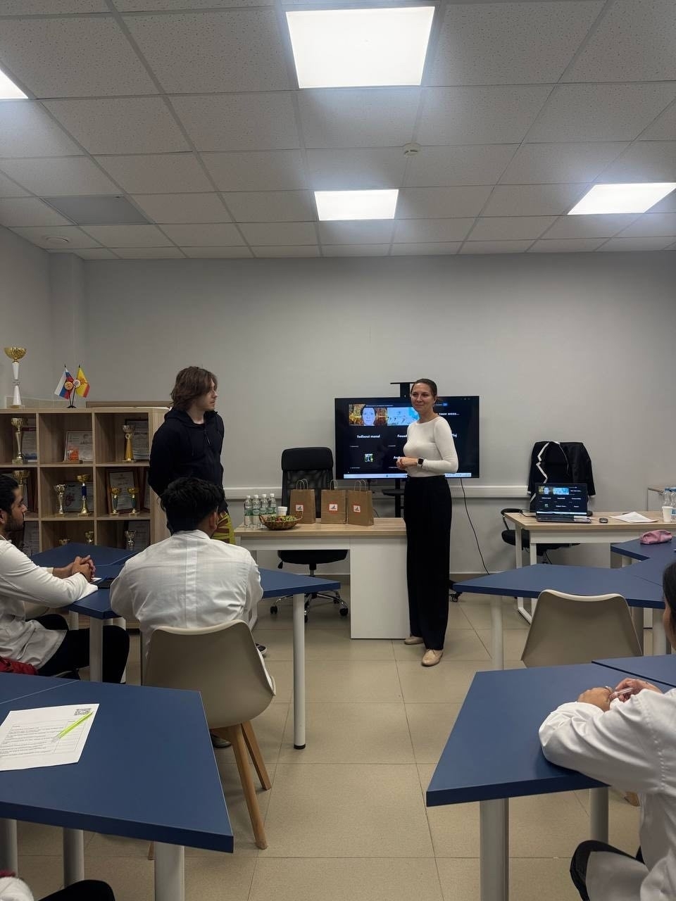 22 октября студент факультета иностранных языков Козлов Матвей осуществлял устный последовательный перевод на очередном мастер-классе для иностранных студентов на английском языке «How to Ace a Job Interview».