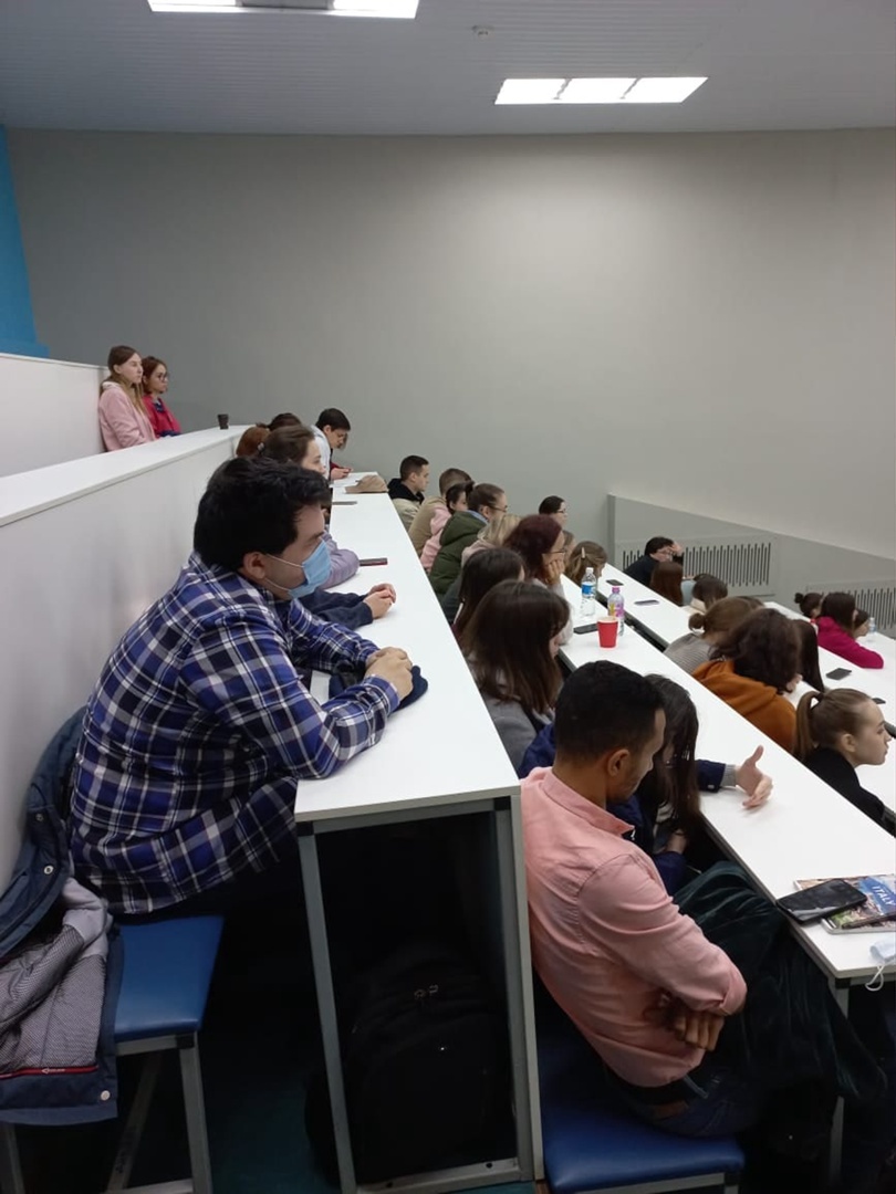 Валентина поделилась опытом письменного, синхронного и последовательного перевода, работы на телевидении и в сфере PR. Посоветовала студентам пробовать себя в качестве волонтёров-переводчиков на различных форумах - такие мероприятия предоставляют хорошие возможности и полезный опыт.