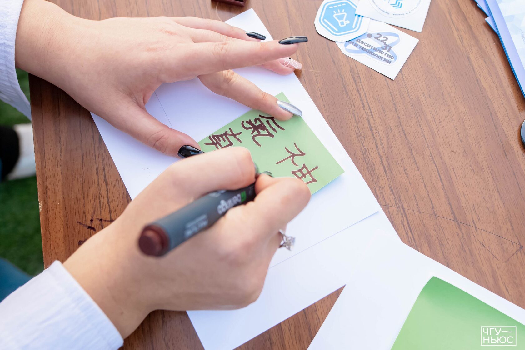 организовало возможность сделать памятную фотографию с китайским зонтом и веером, что очень понравилось участникам "научного свидания".