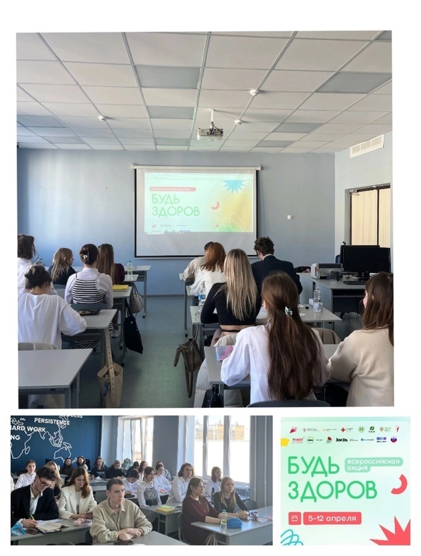 - с 8 по 12 апреля прошли кураторские часы "Урок здоровья», в рамках которой студенты прошли «Диктант здоровья».