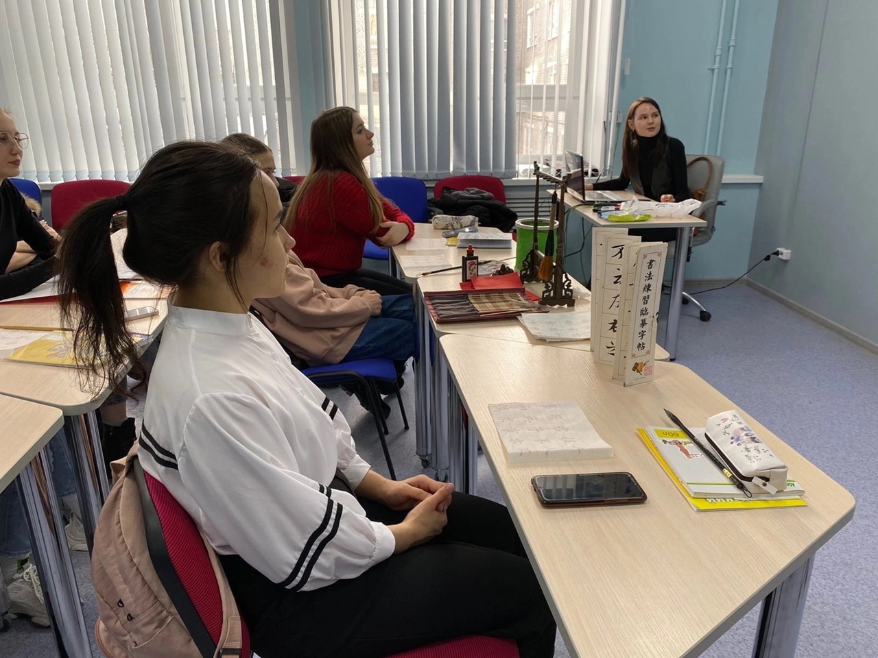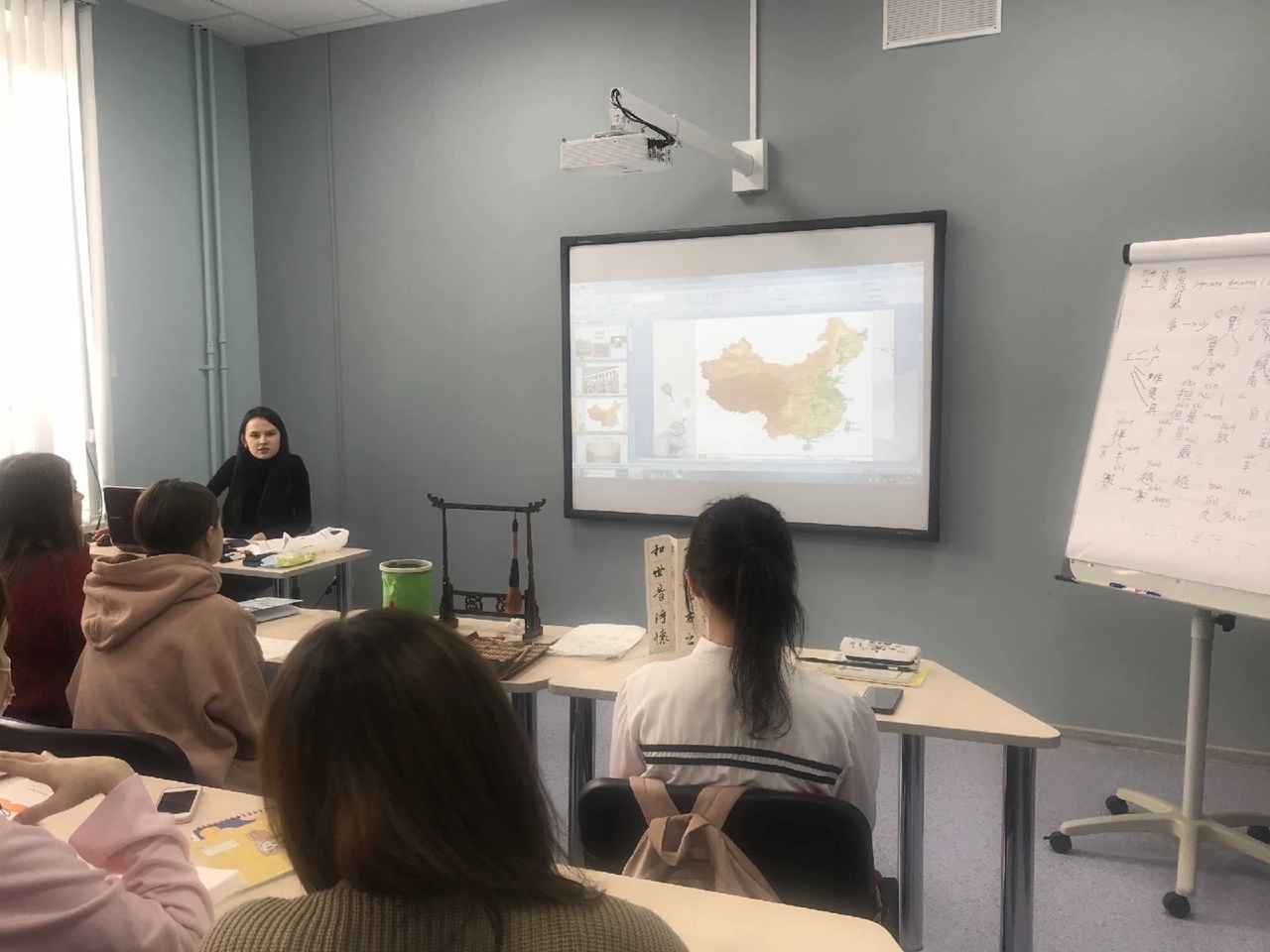 Занятия по китайскому языку ведёт носитель языка, наш преподаватель из Китая - Лю Цянь Цянь. Студенты, выбирающие китайский в качестве второго языка, начинают его изучение с нуля - с правил чтения, китайской иероглифики, знакомства с традициями Китая и пр.