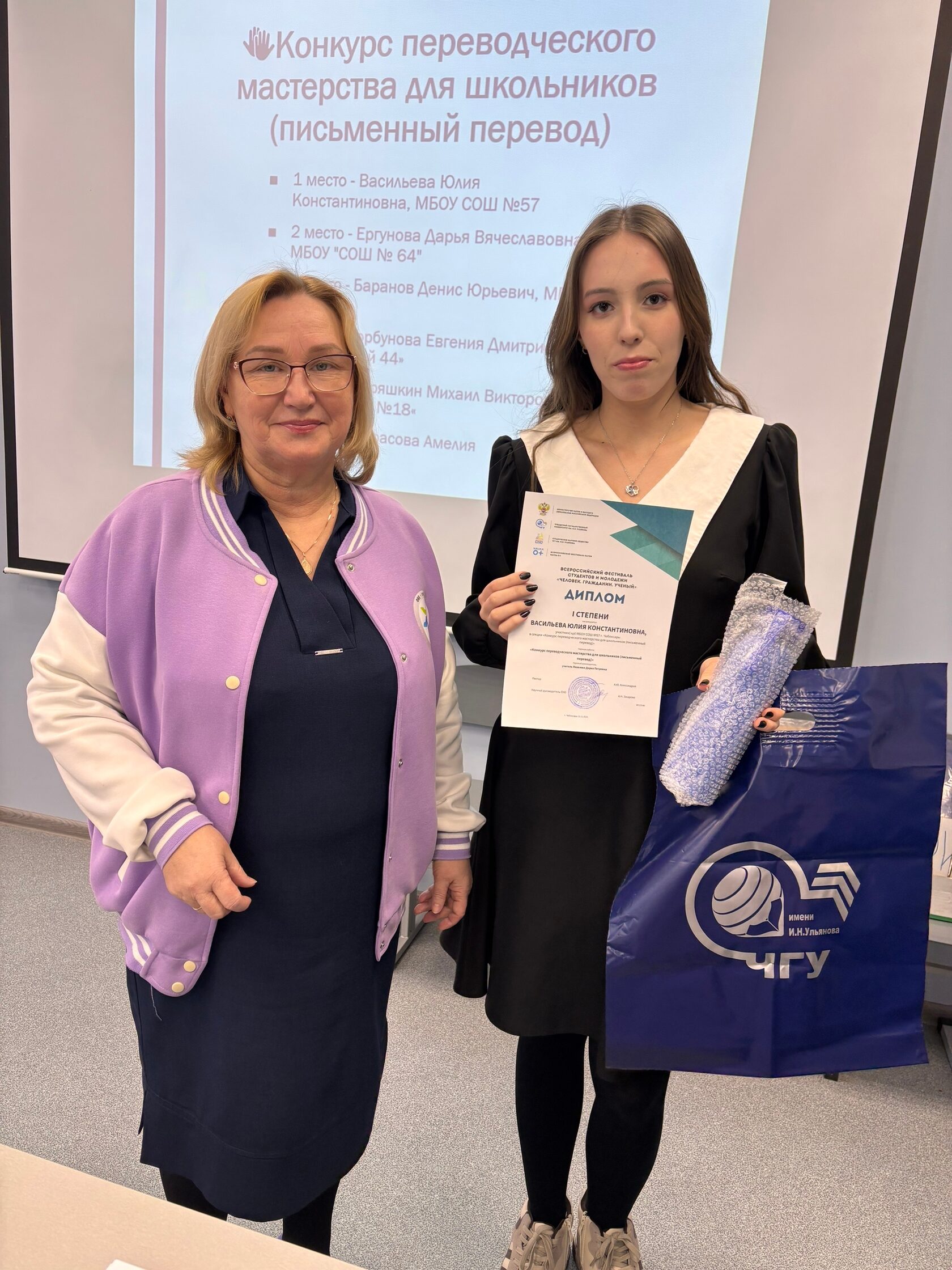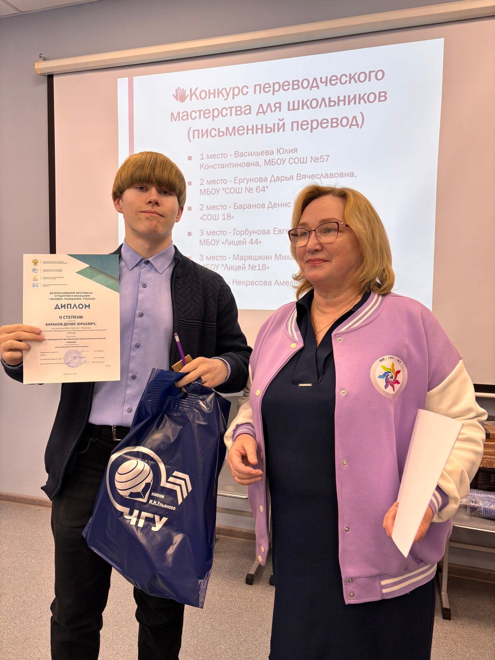 Помимо учащихся нашего факультета дипломами и призами были награждены и обучающиеся школ г. Чебоксары и г. Новочебоксарск, занявшие места в Конкурсе переводческого мастерства для школьников.