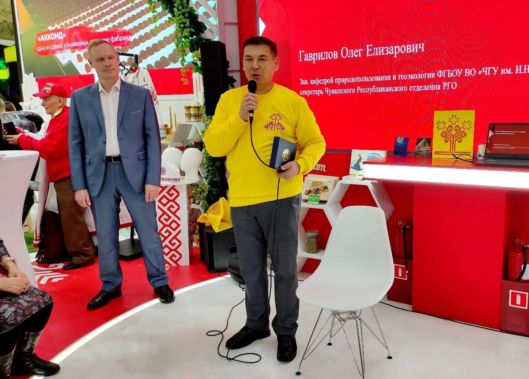 13 февраля заведующий кафедрой природопользования и геоэкологии Чувашского госуниверситета им. И.Н. Ульянова, секретарь Чувашского республиканского отделения Русского географического общества О.Е. Гаврилов представил гостям лекцию о природных ресурсах и условиях Чувашии. Мероприятие проходило в рамках дней Минприроды Чувашии на ВДНХ.